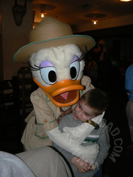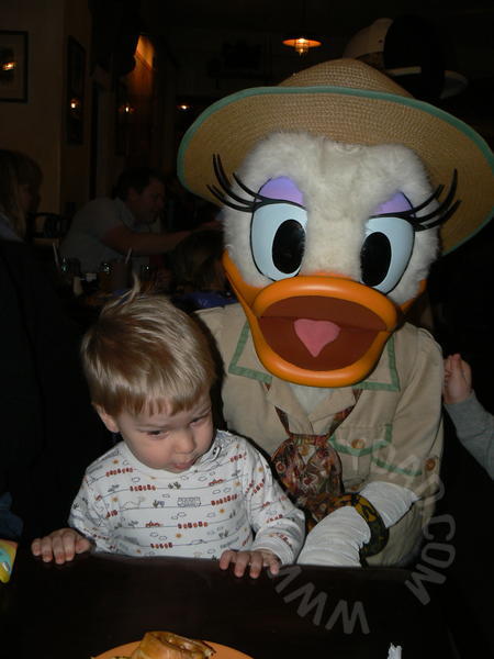 Of course, NHL and JSL couldn’t have cared less about the food. They liked it and all (well, NHL anyway, JSL didn’t eat much), but their real attention was on the characters. Mickey, Goofy and Daisy made the rounds. We had gotten Mickey, Donald and Goofy’s autographs last year, but Daisy was new. 2010 Autograph #1! JSL’s main disappointment with breakfast was the lack of Winnie the Pooh and friends. Apparently, he remembered our Crystal Palace meal from last year and wanted Pooh, Tigger, Piglet and Eeyore. Alas, he wouldn’t see them here.
