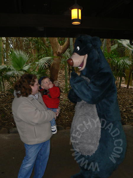 As we left the gorilla area of this trail, JSL fell and we needed to go to First Aid. Leaving First Aid, we scored some more autographs (and photos): Terk from Tarzan, Flick from A Bug’s Life, and Baloo from Jungle Book. 2010 autograph #’s 2, 3 and 4! We also saw a fantastic walking vine lady. Unfortunately, she seemed unable to sign given that she had no hands.