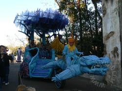 As we left Africa, we saw ropes set up. Clearly a parade route was being marked off. We hadn’t seen the parade last time and there were plenty of good spots left, so we staked out a location and waited. Our patience was rewarded with a fantastic parade filled with many wonderful sights (and some costumes… no signatures though). NHL loved the parade. Before it began, we toyed with waking JSL up to see the parade, but we decided to let him sleep through it. He would have enjoyed it, but we all enjoyed having a rested JSL later on a lot more.