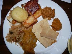 The food at Tusker House was quite good. I loved the chocolate bread and mealy pap and especially the juice they served. I’ve forgotten the exact ingredients, but think it was orange juice, passion fruit and mango. Or something like that. Whatever it was, it was gooood. I downed two glasses and JSL drank plenty as well (as did B and NHL). The desserts were delicious too.
