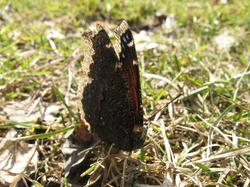At the beginning of last week, I spotted the traditional (at least when I was growing up) sign of spring’s arrival: a robin red breast. I didn’t get a photo, but when I was at the park with the boys during the first official day of spring, I spotted a butterfly. We had B’s camera with us, so I took it and snapped a photo.