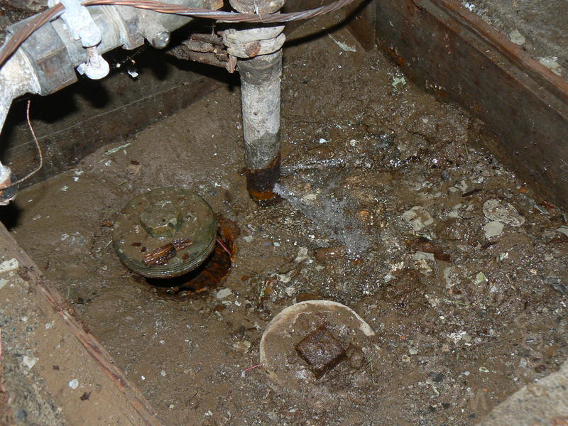 Yes, it turns out that the shut off didn’t quite shut off completely. Not only that, but as I called B, our plumber and the water department, I could see all my hard work going up in smoke. (Going down in water?) By the time the water department folks came down to the basement, the pit was about a quarter of the way filled up. The water department guys were having a tough time working through the increasingly murky water so I offered my wet dry vacuum. A couple more guzzle-lug-dumps later and they had a clear working space to open the sewer cap.