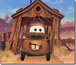 While these Tall Tales are entertaining, can you make a fun Wii game out of them? Dadgum! Of course, you can. Each of Mater’s six tall tales is represented: Rescue Squad Mater, Mater The Greater, El Materdor, Unidentified Flying Mater, Tokyo Mater, and Monster Truck Mater. (NOTE: There are 3 more Tall Tales cartoons, but I believe these were released after the video game work was done. Perhaps room for a Mater’s Tall Tales 2 for the Wii?)