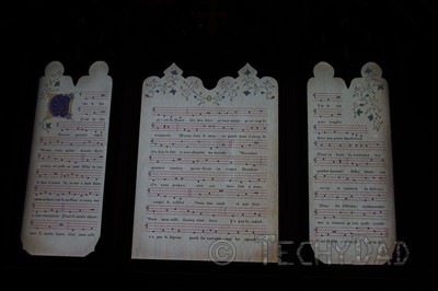 Above the door itself is a stained glass window showing the story of how the prince became The Beast.